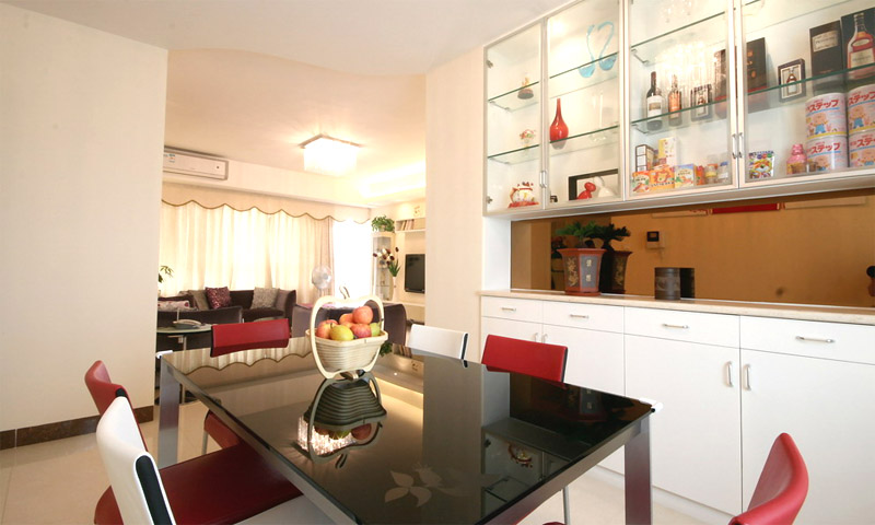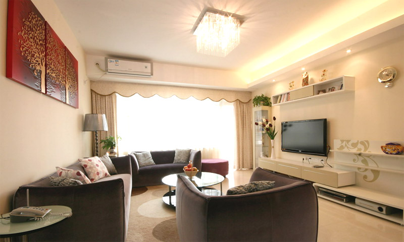 | 案例說明 | 本案重在綈造一個溫馨舒適的家,盡量利用空間,簡潔的色彩搭配來突出主題。主人喜歡白色簡約風格,所以一切重點用軟裝材質來點綴,空間顯得靈動,暗紫色的布藝沙發(fā),紅色的掛畫,黑色的餐桌,紅白間隔的椅子,在整個象牙白里面跳躍起來,讓空間生動舒服,這就是家的感覺,簡潔而不簡單。 | ||